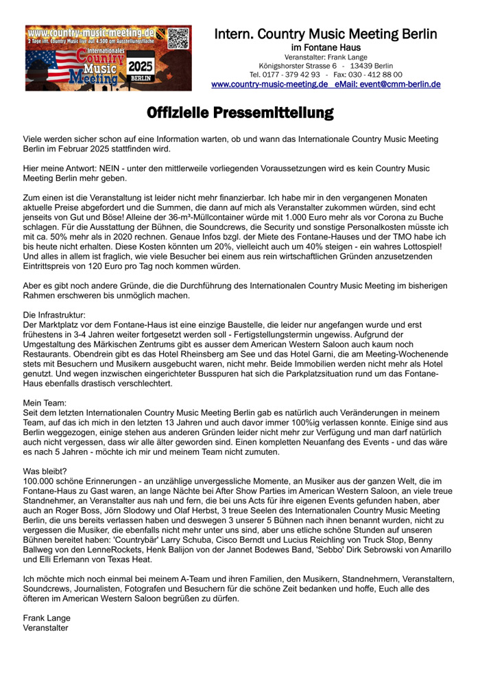 2012 fand in Berlin erneut das Country Music Meeting statt.